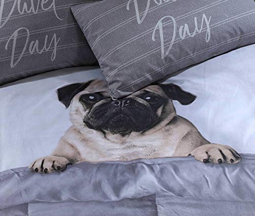 Eirene Threadz, set copripiumino in policotone con federe per cuscini con stampe di Elefante, Gatto, Unicorno, Policotone, Pug Duvet, King