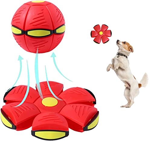 Eivdru Pet Toy Flying Saucer Ball Dog Toy, Frisbee Ball Dog Toy, Pet Toys Dog Toys Strange Magic Flying Saucer Ball For Family Games, Adult Children and Dog and Cat Toys(Red,No Lights)