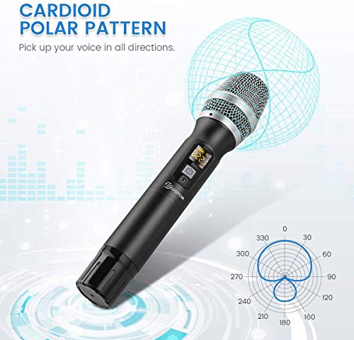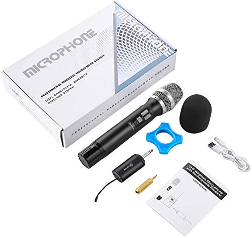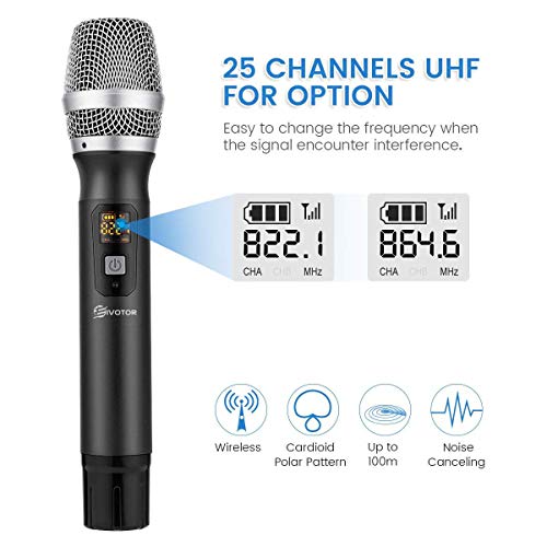 EIVOTOR Microfono Wireless, Radiomicrofono Karaoke UHF Portatile Professionale di Mano a 25 Canali per Karaoke,Home KTV,Sorgente Sonora, Registrazione, Feste Nero