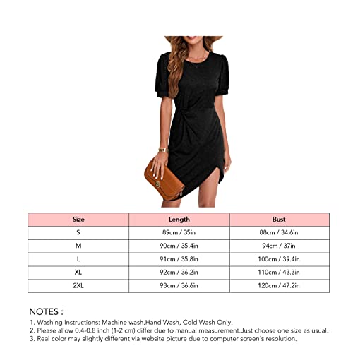 Ejoyous - Abito da donna con maniche a sbuffo corte, girocollo, arricciato, con orlo irregolare, colore puro, estivo, per uso quotidiano, ufficio, appuntamento, feste in spiaggia, Nero, XL