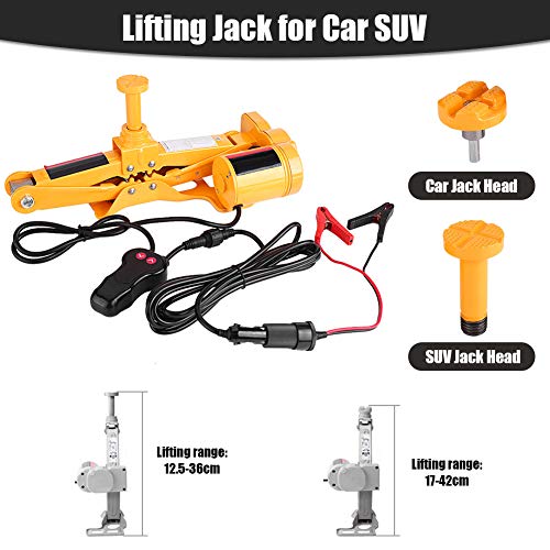 【Universale】- 2 testine rimovibili sono progettate per berlina e SUV. I veicoli sotto 3 tonnellate possono essere sollevati facilmente, da 12,5 cm a 36 cm di altezza di sollevamento per auto e da 17 a 42 cm di altezza di sollevamento per SUV. Rimuovere le viti con la chiave elettrica in dotazione, cambiare rapidamente un pneumatico, leva perfetta per pneumatici