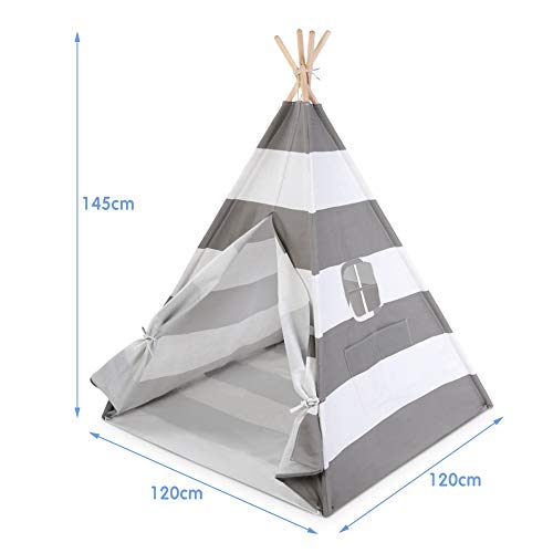 Ejoyous Teepee Tipi - Tenda da gioco per bambini, indiana, con tappetino in cotone, per bambini, con finestra, 120 x 120 x 145 cm