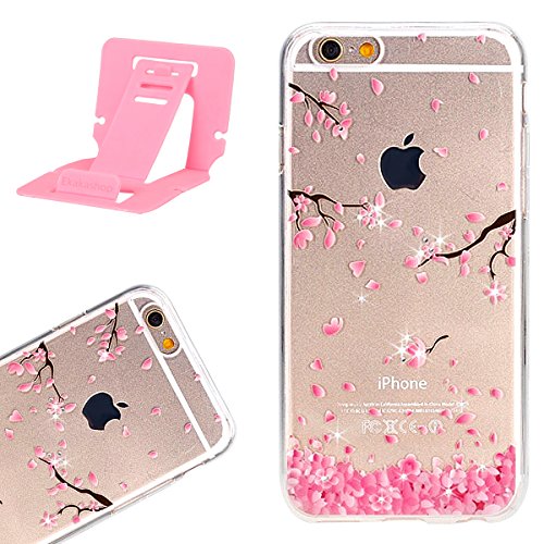 Ekakashop Custodia iPhone 8/7 Bumper Cover,Moda Design Trasparente Glitter Brillantini Bling Diamante e Strass Disegni Case Compatibile con iPhone 7/iPhone 8,Diamante Cherry-Rosa