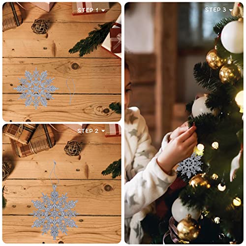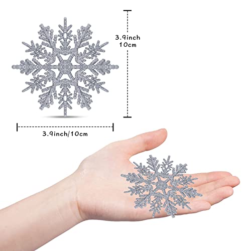 【Colore】 Il colore dei fiocchi di neve è argento, sono fatti di plastica, che è molto leggera e resistente. Non si rompono facilmente e non danneggiano il ramo dell'albero di Natale.