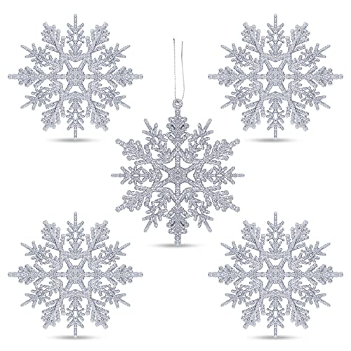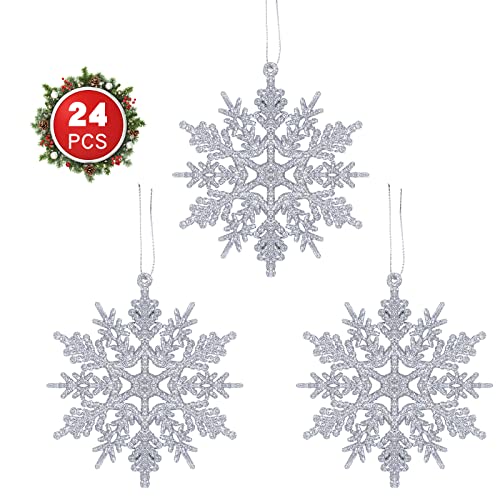 EKKONG Decorazione Natale Fiocco di Neve, Fiocchi di Neve Glitter, 24 Pezzi, 10 CM, Decorazioni Natalizie per Finestre E Albero di Natale (D'argento)