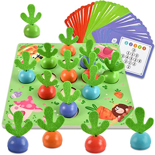 EKKONG Gioco di Memoria in Legno, Memory Scacchi Legno Bambini, Gioco di Scacchi a Memoria di Carota, Giocattoli educativi di Scacchi di Memoria, Giochi da Tavolo dai 3 Anni, Adulti e Bambini
