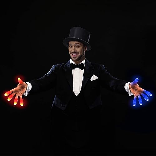 【Luminosità Abbagliante】La nostra Magic Trick Fingers ha due colori di luce totale rossa e blu, il tempo di illuminazione è lungo, lucido e abbagliante, l'effetto di illuminazione è simile a un bastone luminoso, è un buon oggetto di scena incandescente.