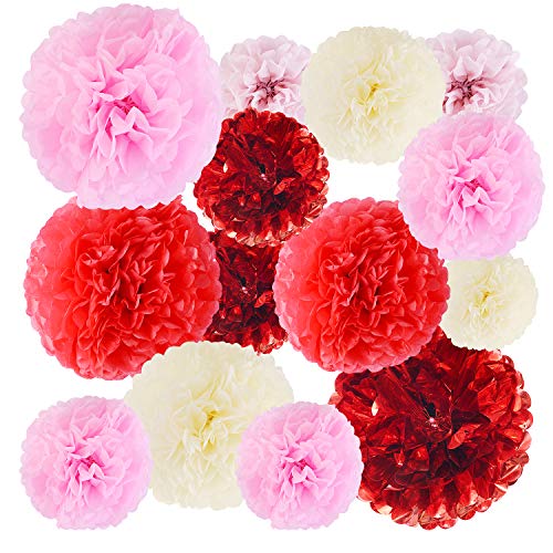 Dimensioni e colori: Un adorabile set da 20 pompon in carta velina per decorare matrimoni e feste di compleanno, in 4 diverse dimensioni e 5 diverse colori, potete decorare la vostra festa bene. 5 colori (Rosso lampeggiante, Rosso, Rosa, Rosa chiaro e Beige);