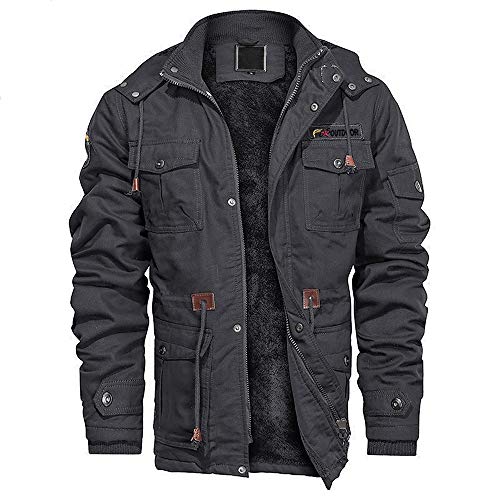 EKLENTSON Uomo Giacca Militare in Cotone Cappotti in Pile Invernali Cargo Jacket con Cappuccio Rimovibile, Grigio, S