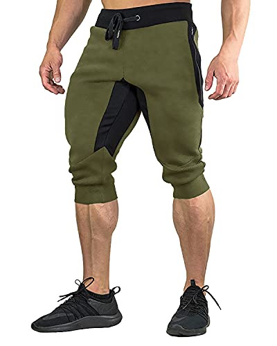 EKLENTSON Uomo Tre Quarti Pantaloni Capri 3/4 Allenamento Jogger Pantaloni Corti con Cerniera, 5 Verde Militare, 32