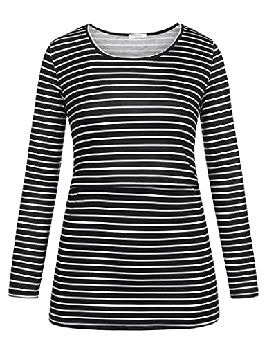 Ekouaer Maglietta da donna per allattamento, a maniche lunghe, con doppio strato, taglie S-XXL, marrone castagno, grigio chiaro, bianco nero, L