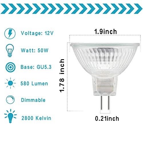 EKSAVE Lampadine alogene MR16, 12 V, 50 W, GU5.3, con base a due pin, dimmerabili, luce bianca calda, 2800 K (6 pezzi)