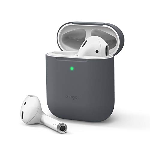 Elago Skinny Custodia Cover Compatibile con AirPods 1 & 2 - LED Frontale Visibile, Supporta Ricarica Wireless, Senza Cardini, Cover per Porta di Ricarica (Grigio Scuro)