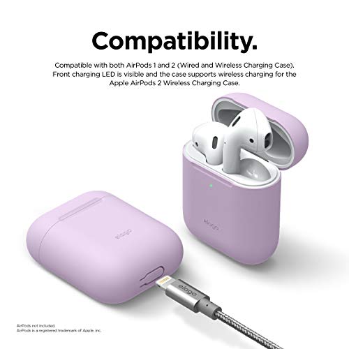Elago Skinny Custodia Cover Compatibile con AirPods 1 & 2 - LED Frontale Visibile, Supporta Ricarica Wireless, Senza Cardini, Cover per Porta di Ricarica (Lavanda)