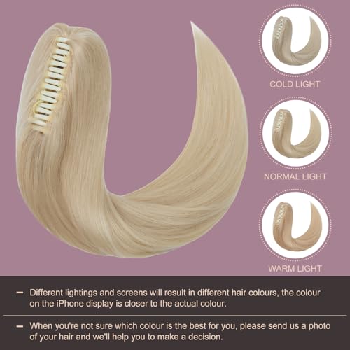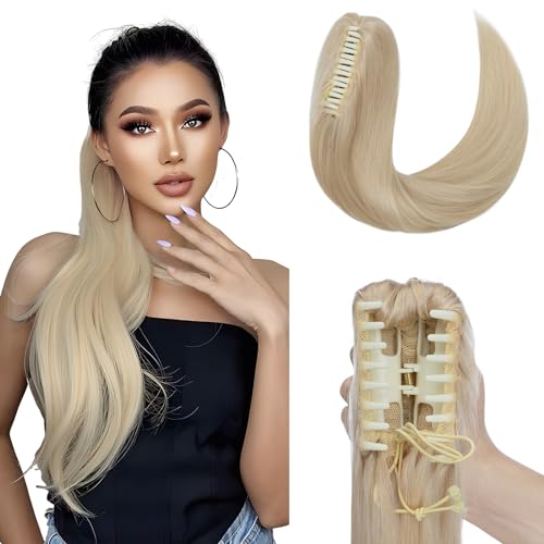 Clip Elailite In Extension Per Capelli Veri Clip In Coda Di Cavallo 100% Capelli Umani Remy Lisci Per Coda Di Cavallo Finta 55 Cm 120 G 60# Biondo Platino