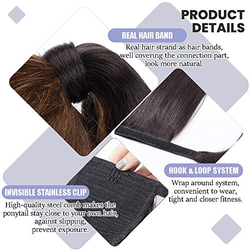 Avvolgere la coda di cavallo: legato da una piccola ciocca di capelli e un sistema di aggancio e loop. Si adatta bene con capelli sottili e spessi. Lunghezza: 18 pollici - Peso: 90g - Colore: # 1B Natural Black