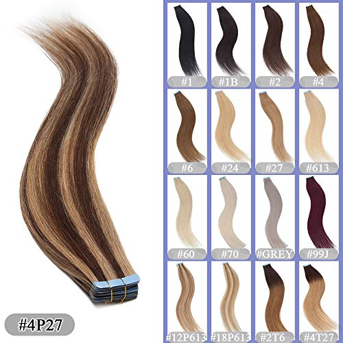 Elailite Extension Adesive Capelli Veri Biadesive 20 Ciocche Biadesivo 30cm Tape Hair Extensions Remy Human Hair Naturali 40g Allugamento Riutilizzabile - #4/27 Cioccolato mix Biondo Scuro