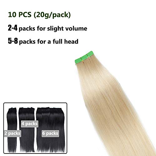 Elailite Extension Adesive Capelli Veri Biadesivo 10 Fasce Biadesive Remy Human Hair Biondi Umani Tape Extensions Super Invisibile 20g/Set, 30cm #60 Biondo Platino