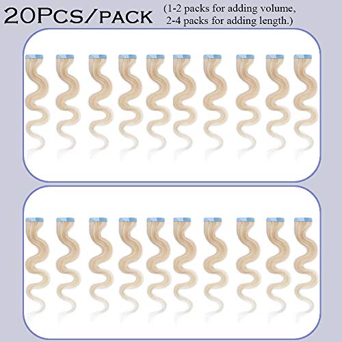 Elailite Extension Adesive Capelli Veri Biadesivo 20 Fasce Biadesive Ricci Mossi Remy Human Hair Biondi Umani Tape Extensions 50g/Set, 55cm #60 Biondo Platino