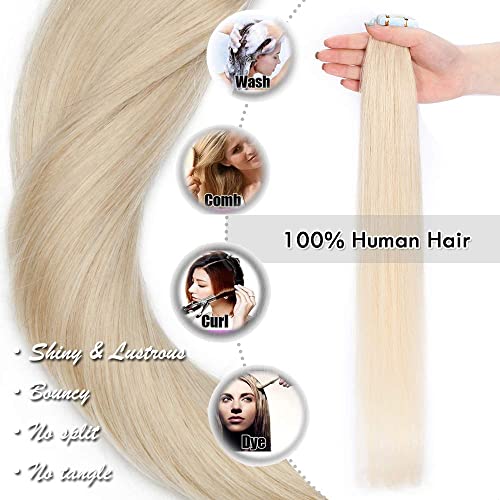 Elailite Extension Adesive Capelli Veri Biadesivo 40 Ciocche 80g - 30cm Tape Biadesive Human Hair Naturali 100% Remy Larga 4cm #70 Bianco Chiarissimo