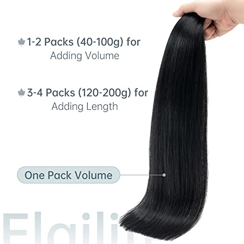 Elailite Extension Biadesivo Capelli Veri Adesive Super Invisibili 50g/Set 100% Remy Human Hair Neri Lisci 20 Fasce Tape Hair Extensions Biadesive 55cm senza Clip #1 Jet Nero
