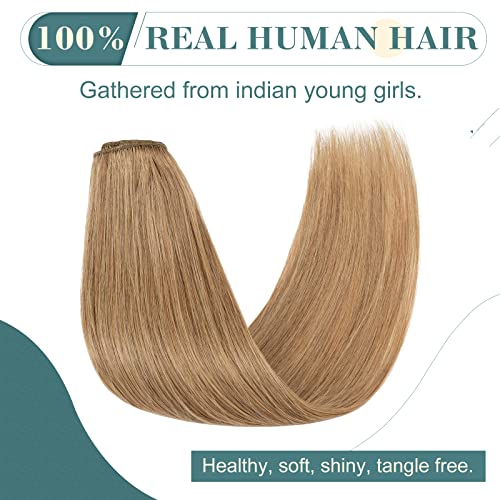 Elailite Extension Capelli Veri Clip Set da 8 Ciocche Singole Grade 8A Remy Human Hair Naturali 55.88cm (75g) 27# Biondo Scuro