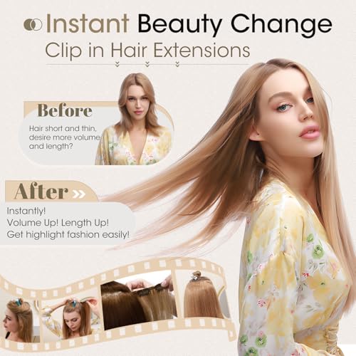 Elailite Extension Capelli Veri Clip Set da 8 Ciocche Grade 8A Remy Human Hair Naturali Allungamento Quickclip [Normal Weft, 55cm (75 gr)] Balayage #Castagna Chiaro mix Biondo Chiaro