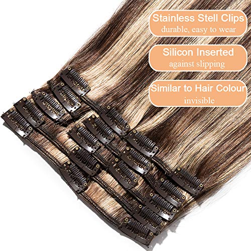 Elailite Extension Capelli Veri Clip Grade 8A Remy Human Hair Naturali Set da 8 Ciocche Allungamento Quickclip [Normal Weft, 45cm (70 gr)] Balayage #Marrone Cioccolato mix Biondo Scuro