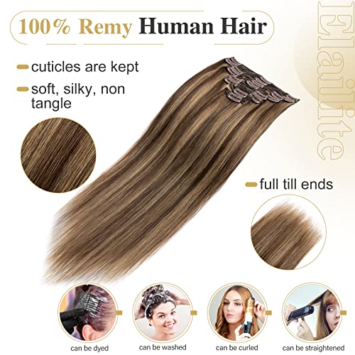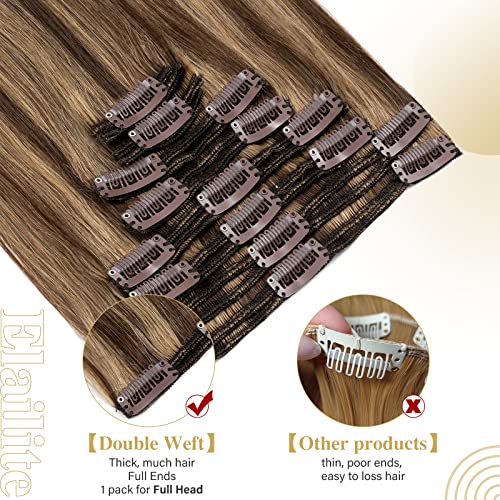 Elailite Extension Capelli Veri Clip Volumizzante 45cm 140g - 8 Fasce Folte Double Weft Full Head 100% Remy Human Hair 4#/27# Cioccolato/Biondo Scuro