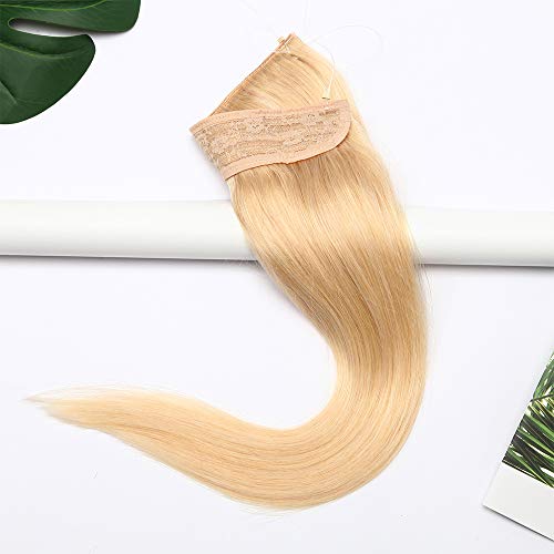Elailite Extension Capelli Veri con Filo Invisibile Double Volume 55cm 100% Remy Human Hair Naturali Fascia Unica senza Clip 120g #613 Biondo Chiarissimo