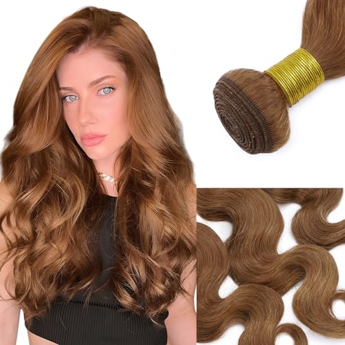 Elailite Extension Capelli Veri Tessitura 50cm 100g Matassa Ricci Mossi Naturali Biondi Unprocessed Virgin Human Hair # Castano