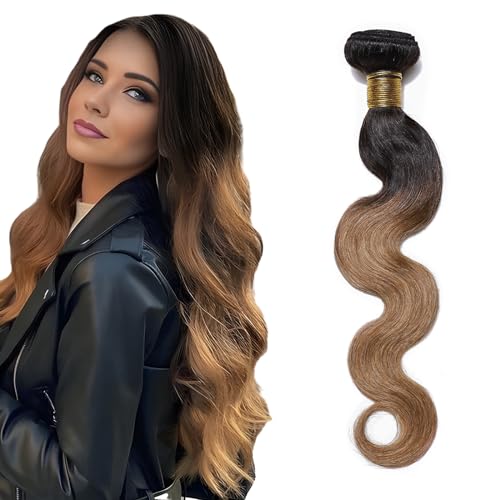 Elailite Extension Capelli Veri Tessitura Una Ciocca Matassa Shatush 100g Unprocessed Virgin Human Hair Ricci Mossi Naturali 40cm #1B Nero Naturale/#27 Biondo Scuro
