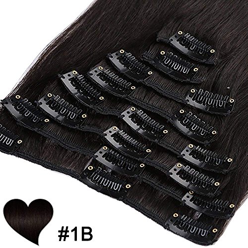 Elailite Extension Clip Capelli Veri Naturali Qualita Migliorata Super Invisibile - 8 Fasce Singole 100% Remy Human Hair 45cm (70g) #1B Nero Naturale