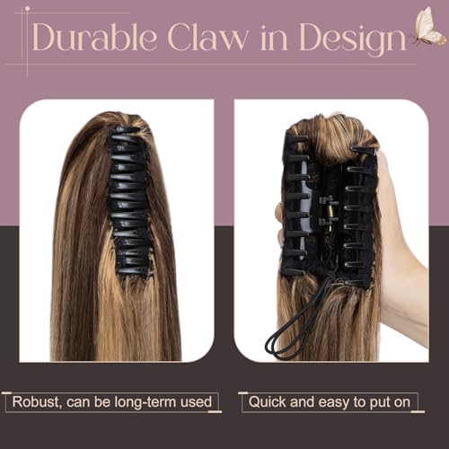 Elailite Extension Coda Capelli Veri Clip Effetto Realistico Ponytail Pinza Remy Human Hair Lisci per Coda di Cavallo Finta 55cm 120g 4# Marrone Cioccolato balayage 27# Biondo Scuro