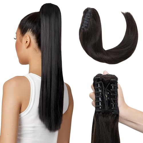 Elailite Extension Coda Capelli Veri Clip Effetto Realistico Ponytail Pinza Remy Human Hair Lisci per Coda di Cavallo Finta 40cm 105g 1B# Nero Naturale