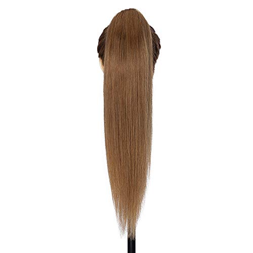 Elailite Extension Coda di Cavallo Capelli Veri Clip Effetto Realistico Ponytail Pinza Remy Human Hair Lisci per Coda Finta 50cm 120g 6# Castagna