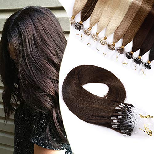 Elailite Extension Microring Capelli Veri Anelli 1 Grammo 50 Ciocche Remy Human Hair Naturali a Anellini 50g Lunghi 60cm #2 Marrone Scuro