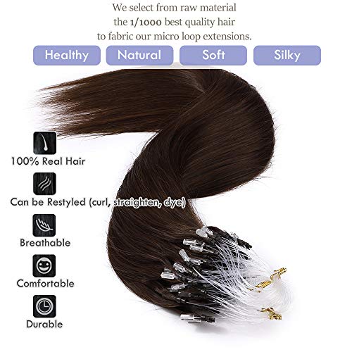 Elailite Extension Microring Capelli Veri Anelli 100 Ciocche/pack Grade 8A Remy Human Hair Naturali con Anellini Allungamento Capelli 50g 55cm #4 Marrone Cioccolato