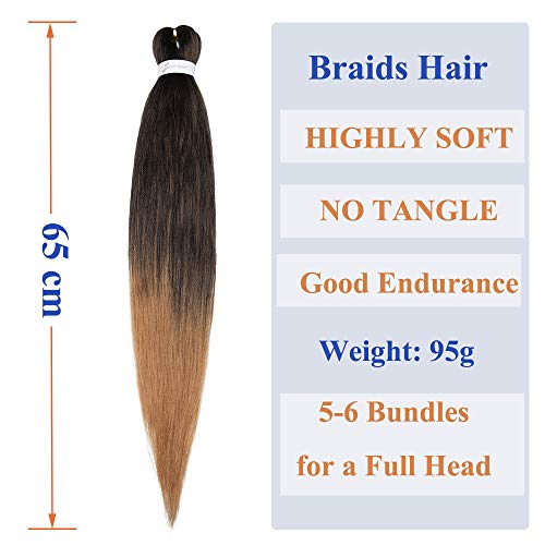 Elailite Treccine Afro Extension Capelli Ricci per Treccia Finta Donna Bambina Trecce Lunghe 65cm 3 Ciocche Braids Braiding Hair Fibre Crochet 270g - Nero/Castano Ramato Chiaro