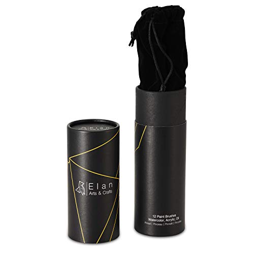 Elan Set Pennelli Pittura, 12 Pennelli per Dipingere Professionali, Pennelli Pittura Acrilica, Pennelli per Acquerelli, Pennelli per Pittura ad Olio, Astuccio porta Pennelli Pittura di Precisione