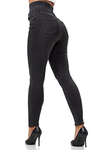 Elara Ladies Jeans Stretch Push Up Chunkyrayan JS999 Schwarz-46 (3XL)