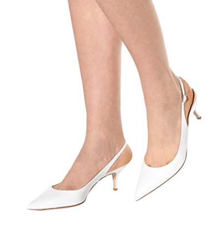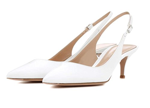 Elashe - Scarpe da Donna - 6.5cm- Pointed Toe Slingback Sandali - tacco gattino Con Cinturino Caviglia Fibbia Bianca EU36