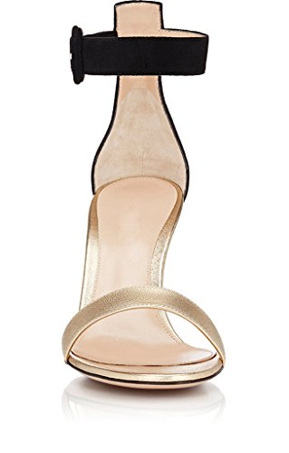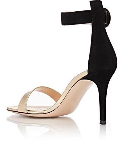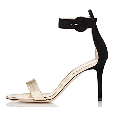 Elashe - Scarpe da Donna - Open Toe Classico Sandali - 8CM Tacco a Spillo Con Cinturino Caviglia Fibbia Oro-Nero EU36