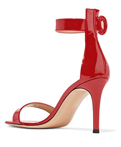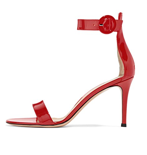 Elashe - Scarpe da Donna - Open Toe Classico Sandali - 8CM Tacco a Spillo Con Cinturino Caviglia Fibbia Rosso EU44