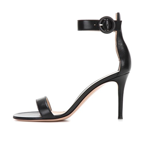 Elashe - Scarpe da Donna - Open Toe Classico Sandali - 8CM Tacco a Spillo Con Cinturino Caviglia Fibbia Nero-opaco EU35