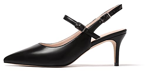 Elashe Scarpe con Tacco Donna Gattino Cinturino Regolabile Scarpe Tacco Gattino 2.6" Medio Tacco Nero Opaco EU41
