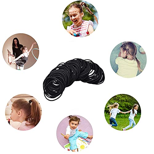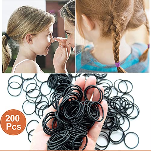 200 elastici per capelli per bambine, non metallici, neri, piccoli, 2 mm, sottili elastici per capelli, per coda di cavallo, per capelli ricci, per bambini
