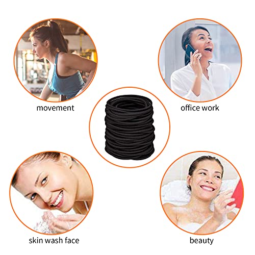 100 elastici per capelli da 4 mm, neri senza metallo, fascia elastica per coda di cavallo, supporto per capelli spessi e pesanti e ricci, accessori per acconciature per donne e ragazze, nero