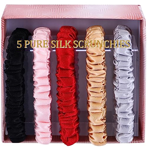 Elastici Capelli Scrunchies Seta per Donna Bambina, 5 Pezzi Elastico Scrunchies Neri Raso per Capelli Ricci
