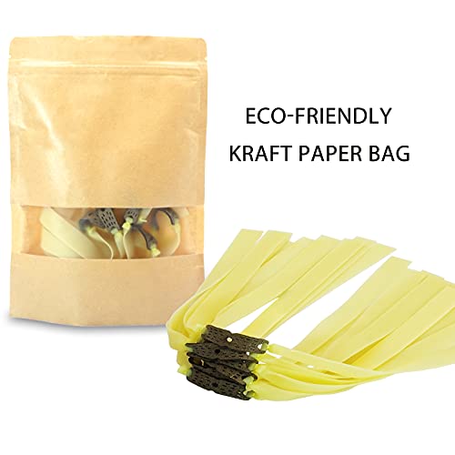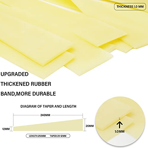 Lista di imballaggio: con 12 strisce di gomma ad alta tecnologia. fionda Elastico 100% fatto a mano. Alta qualità, con durezza equivalente, che è super leggera, resistente e facile da maneggiare. La fionda elastica può controllare la stabilità di tiro e far sparare meglio il bersaglio.
